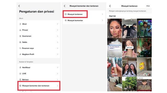 Setelah masuk ke menu “Privasi dan Keamanan”, cari dan pilih opsi “History Tontonan” atau “Tontonan Saya”. Ini akan membawa Anda ke halaman yang menampilkan daftar video-video yang pernah Anda tonton di TikTok.