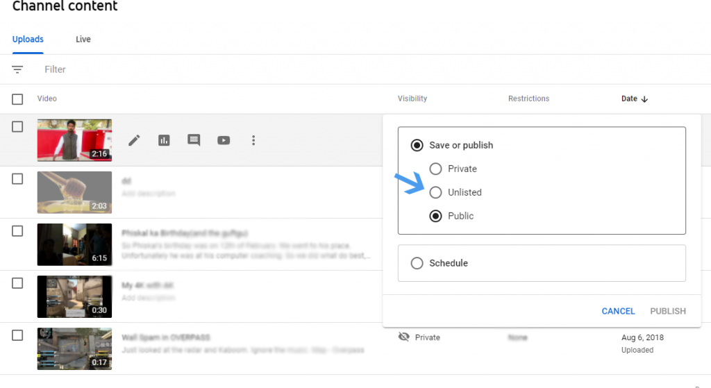 Langkah 5 : Pilih Opsi “Unlisted”
