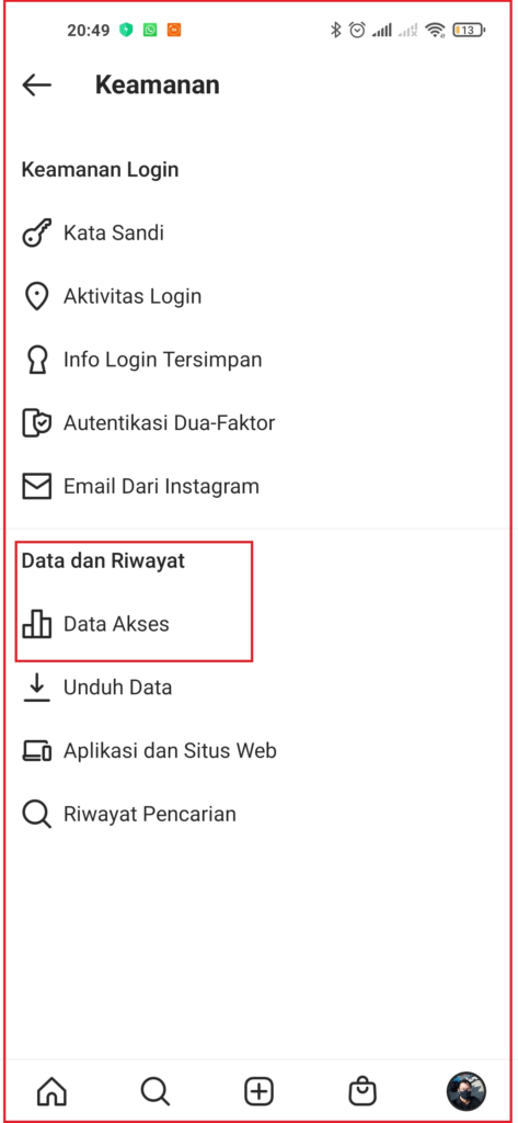 4. Cari Opsi Aktivitas Di dalam menu pengaturan, gulir ke bawah dan cari opsi “Aktivitas” atau “Akun & Keamanan”. Ketuk opsi tersebut untuk masuk ke pengaturan aktivitas.