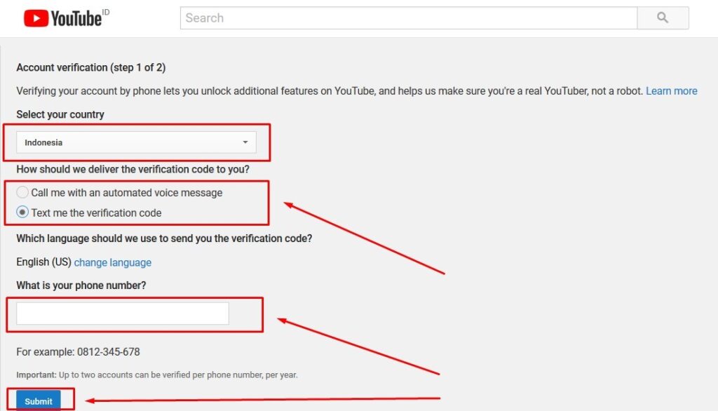 Jika Anda belum memverifikasi nomor telepon Anda, YouTube akan meminta Anda untuk melakukannya. Ikuti instruksi yang diberikan untuk memverifikasi nomor telepon Anda.