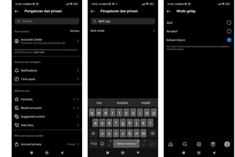 Setelah Anda mengaktifkan Dark Mode di pengaturan ponsel, buka aplikasi Instagram. Anda akan melihat bahwa tampilan aplikasi telah berubah menjadi latar belakang gelap, memberikan pengalaman pengguna yang lebih nyaman, terutama dalam kondisi cahaya rendah.