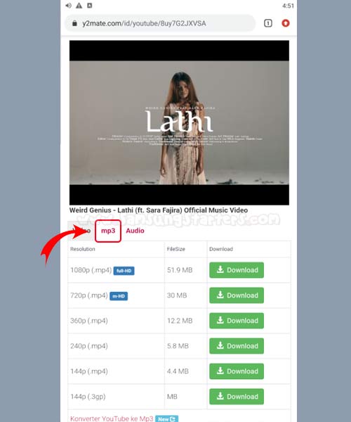 d. Pilih Format: Pilih format audio yang diinginkan dan klik tombol download.
